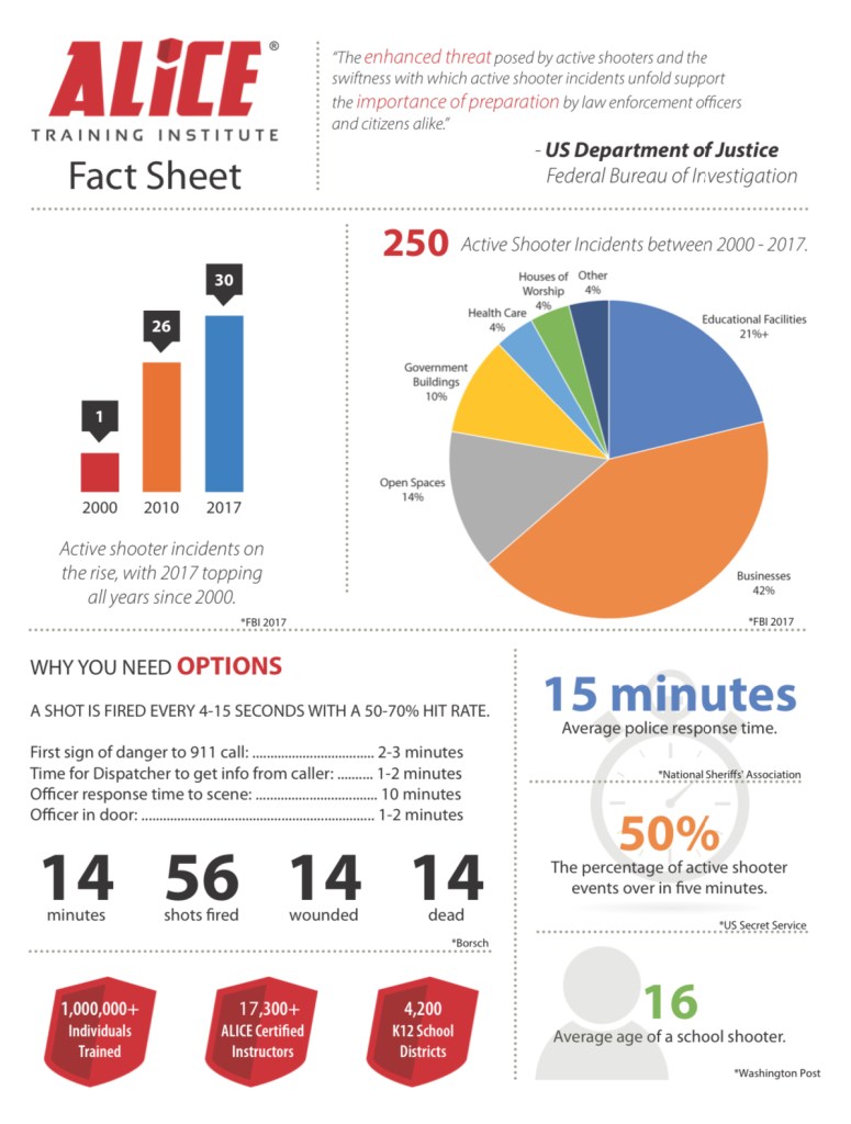 - As a school psychologist I am well aware of the statistics of response times from first responders and the outcomes when an active shooter enters a school property- it’s catastrophic! The facts are most active shootings end before police are even present on scene.